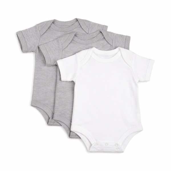 Short-Sleeved Baby Onesie with Envelope Neck - Grey