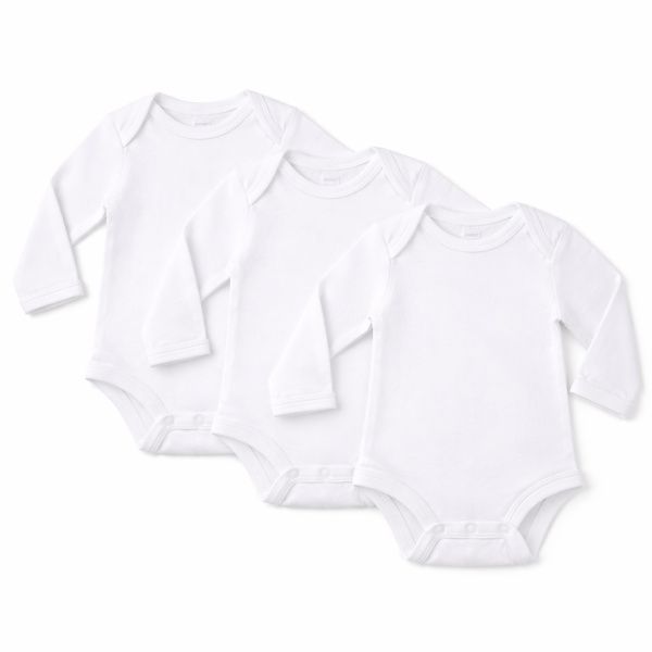 Long-Sleeved Baby Onesie – White- 3pack